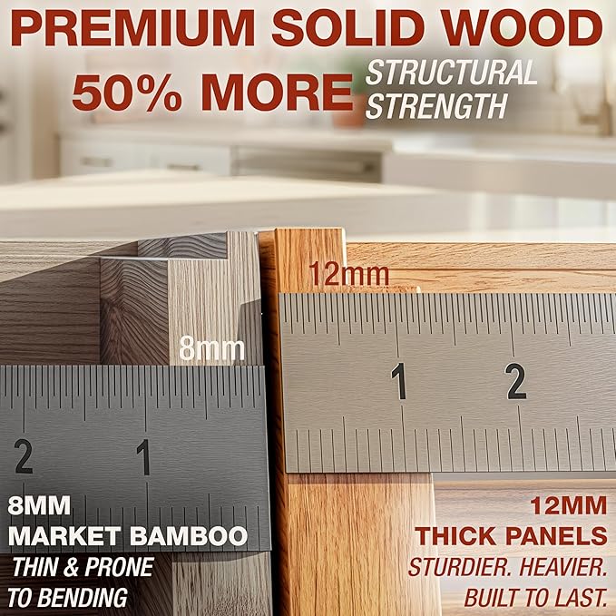 - SOLID WOOD – THICKER & MORE DURABLE : Crafted from solid rubber wood, not bamboo or composite boards. Thicker panels provide added strength and stability for long-lasting daily pantry use.