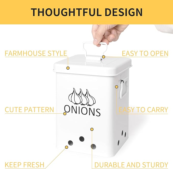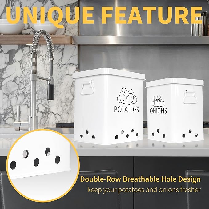 - Unique Dual-row Air Circulation Hole design: The dual-row ventilation hole design of our potato and onion storage bin ensures optimal air circulation on all four sides, keeping your vegetables fresher for longer.
