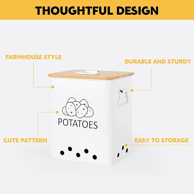 - Unique Dual-row Air Circulation Hole design: The dual-row ventilation hole design of our potato and onion storage bin ensures optimal air circulation on all four sides, keeping your vegetables fresher for longer.