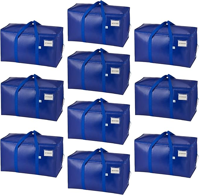 VENO 10 Pack Moving Bags, Upgraded Heavy Duty, Moving Boxes Alternative, Packing Storage Supplies for Dorm Room Essentials with Zipper for Clothes, Large Totes for Packaging (Blue, 10 Pack)