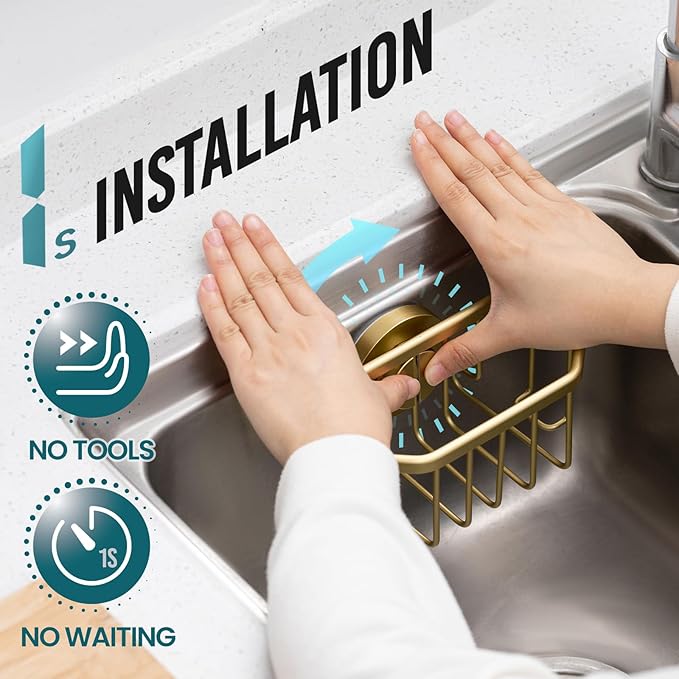 - [1 Second Installation & Removable]: Simply press down the suction cup to squeeze the air out, they will stick to the wall firmly. You can finish the installation in 1 second. No screws, no glue, no tools. The sink caddy can be re-positioned many times and removed without leaving residues (If problems when firstly installation, wash suction cup with warm water and try to install on the dry and clean sink after it is dried with a hair dryer. If the suction cup does not fall, there is no problem and the installation site needs to be changed