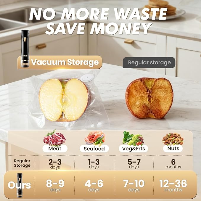 - Handheld Vacuum Sealer for Food Storage: Keep your food fresh up to 5X longer with our powerful vacuum sealer! Whether you're a busy parent meal prepping for the week, a home cook sealing up leftovers, this vacuum sealer makes food storage fast and effortless. Perfect for stay-at-home moms, working professionals, or anyone managing a household. This compact vaccum sealer lock in flavor, your food deserves to taste just as good days later. A must-have gadget for every kitchen, also a gift for birthdays, housewarmings, or holiday celebrations