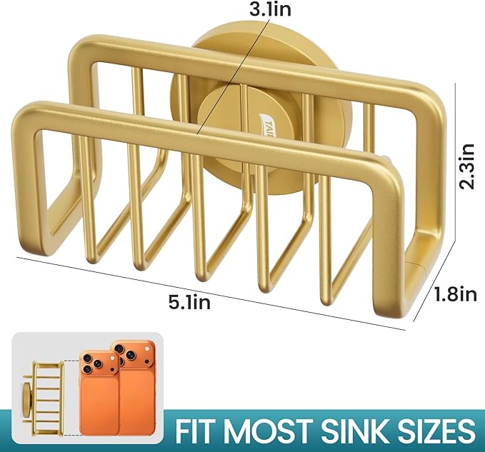 - [Rustproof & Fast Draining]: Made of aluminum finished in rustproof coating which not only prevents rust but also stands up to times. With all-around drainage design, the sponge caddy has maximum air ventilation and fully dripes water away. Keep your kitchen tools air dry quickly and clean