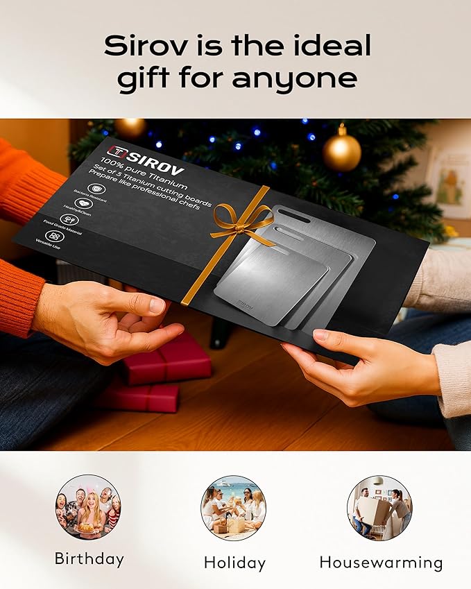 - 『Easy to clean』Titanium cutting boards can be safely washed in a dishwasher, saving time and ensuring thorough cleaning. Rinse the board with water and soap to remove loose food particles.Titanium has natural water-resistant qualities, making rinsing off food residue simple and quick.