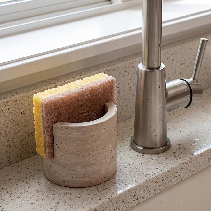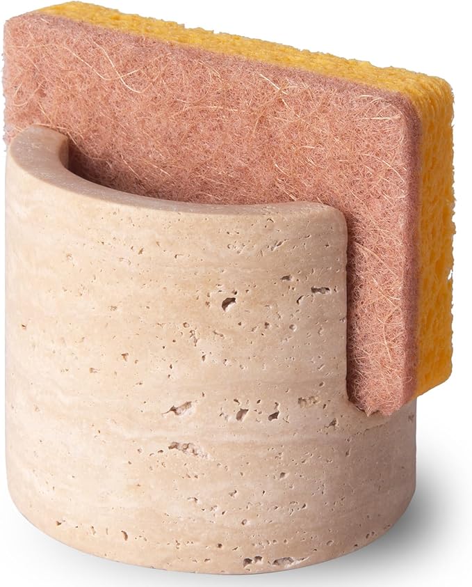 Travertine Natural Marble Sponge Holder, Sponge Caddy for Sink Organizer, Kitchen, Bathroom, Fast Absorbing, Durable, Elegant and Stylish