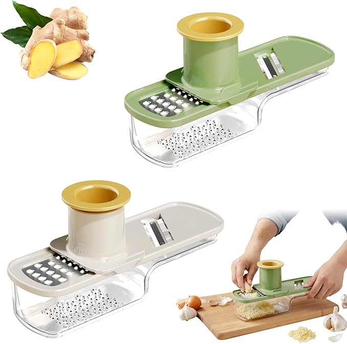 Multifunctional Garlic Grinder, 2026 Upgrade Mini 3 in 1 Garlic Grinder and Slicer, Stainless Steel Garlic Slicer Thin for Household (White and Green)