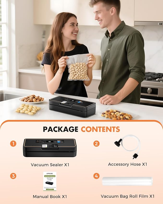 - 【Turbo Flow & 95kPa Pro Suction】Driven by a high-performance 135W motor, UPRUBE’s 12L/min airflow clears the air in seconds for lightning-fast sealing. The pro-level 95kPa suction creates a deep vacuum that keeps food fresh up to 8x longer. For fragile items, simply use the Gentle Pulse mode for ultimate control. It’s so fast and powerful, oxygen barely has time to say goodbye!